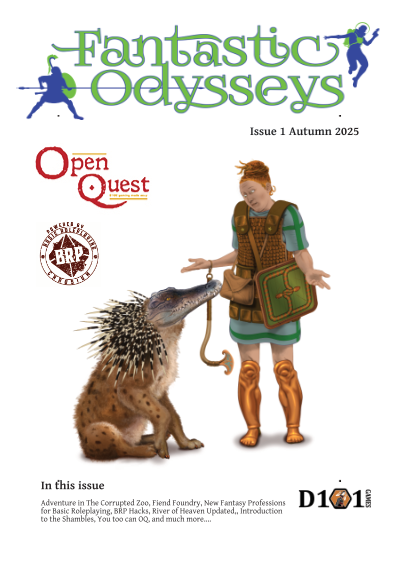 This, along with adventures, rules advice, and new monsters for OpenQuest, and an adventure, new fantasy professions and my house rules for BRP, is in issue one of Fantastic Odysseys, a magazine for D100 game systems available before Christmas.